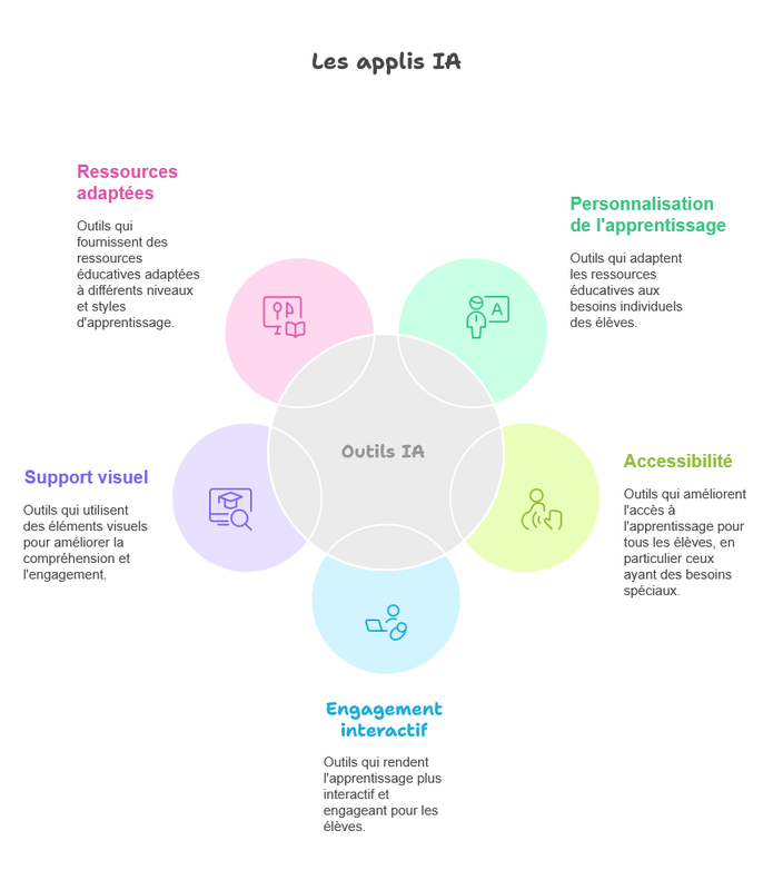 Dans le domaine de l’éducation, l'IA présente beaucoup de possibilités, pour personnaliser l’apprentissage, mieux répondre aux EBEP ; en intégrant l’IAG dans sa séquence, cela peut rendre l’apprentissage plus inclusif et accessible, et développer l’autonomie des élèves.