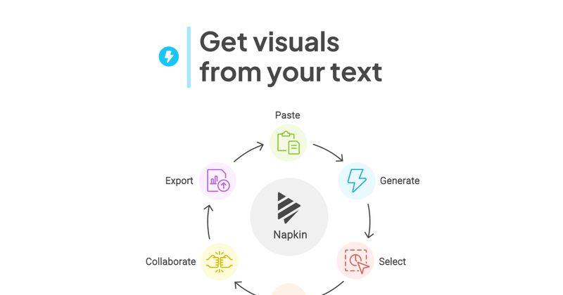 On peut importer un document de l'ordinateur, faire un copier/collé ou tout simplement écrire et Napkin va proposer plusieurs visuels.